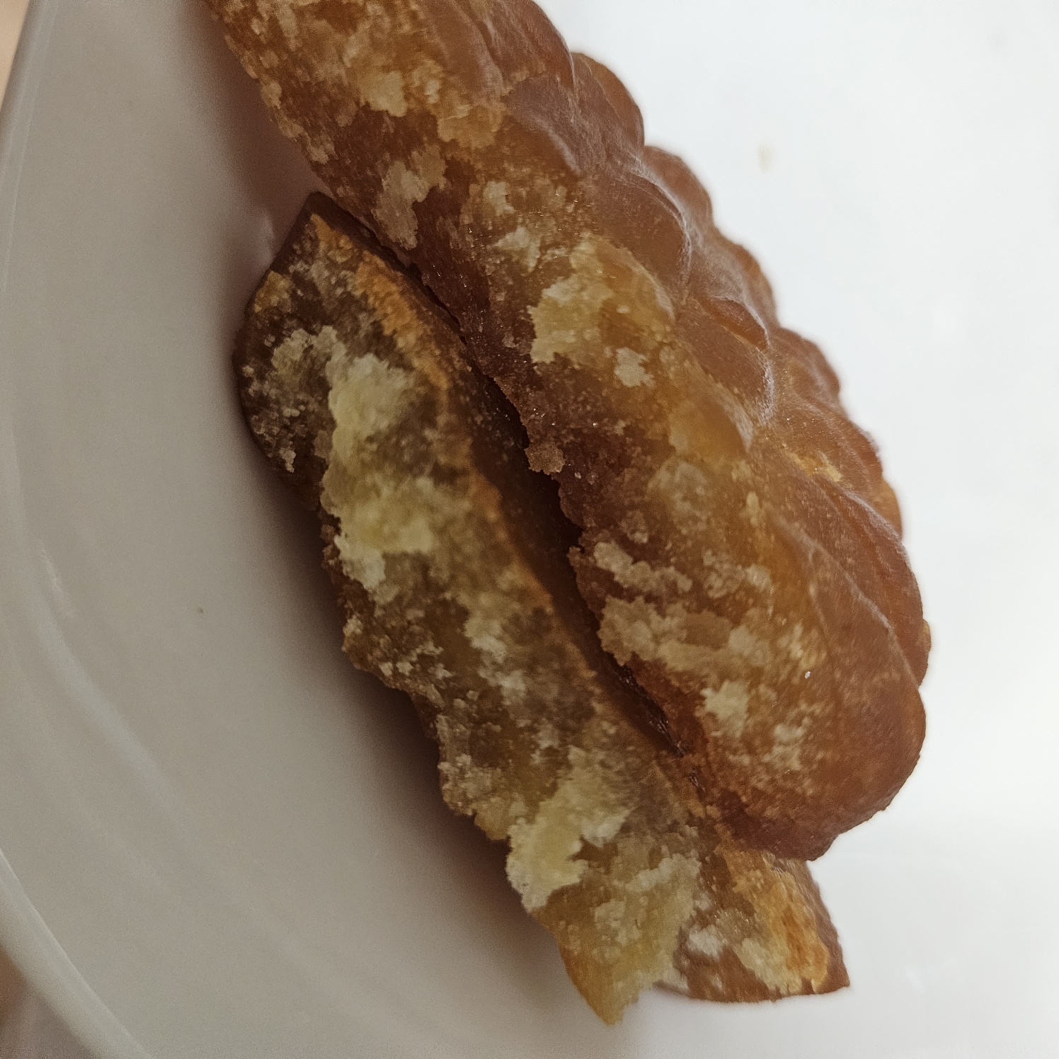 실제로 받아본 약과는 이러했습니다. 겉면에 쫀득한 물엿은 없어요. 생각보다 푸석푸석한 느낌입니다. 냉동보관해서 그런 것이 아니냐 물으신다면