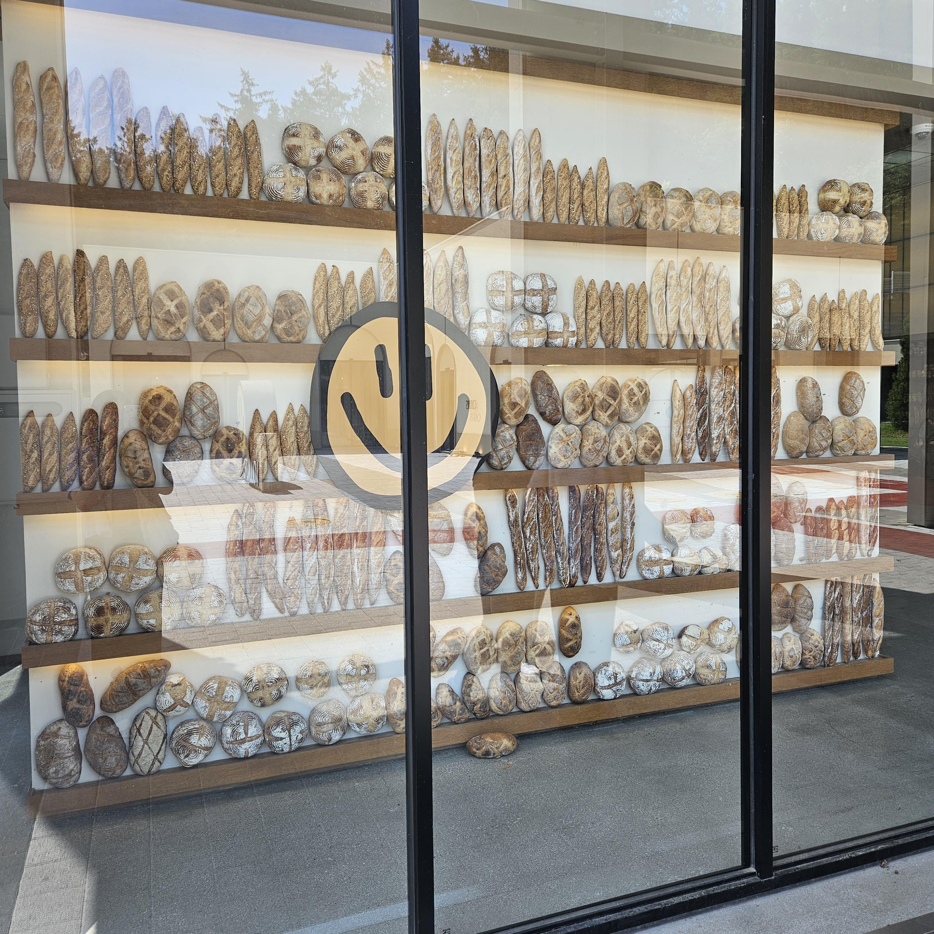 그래서인지 들어가는 입구에 각종 통밀빵 모형들이 전시되어 있어요. 카페로 들어가면 사람들이 꽤 많습니다.